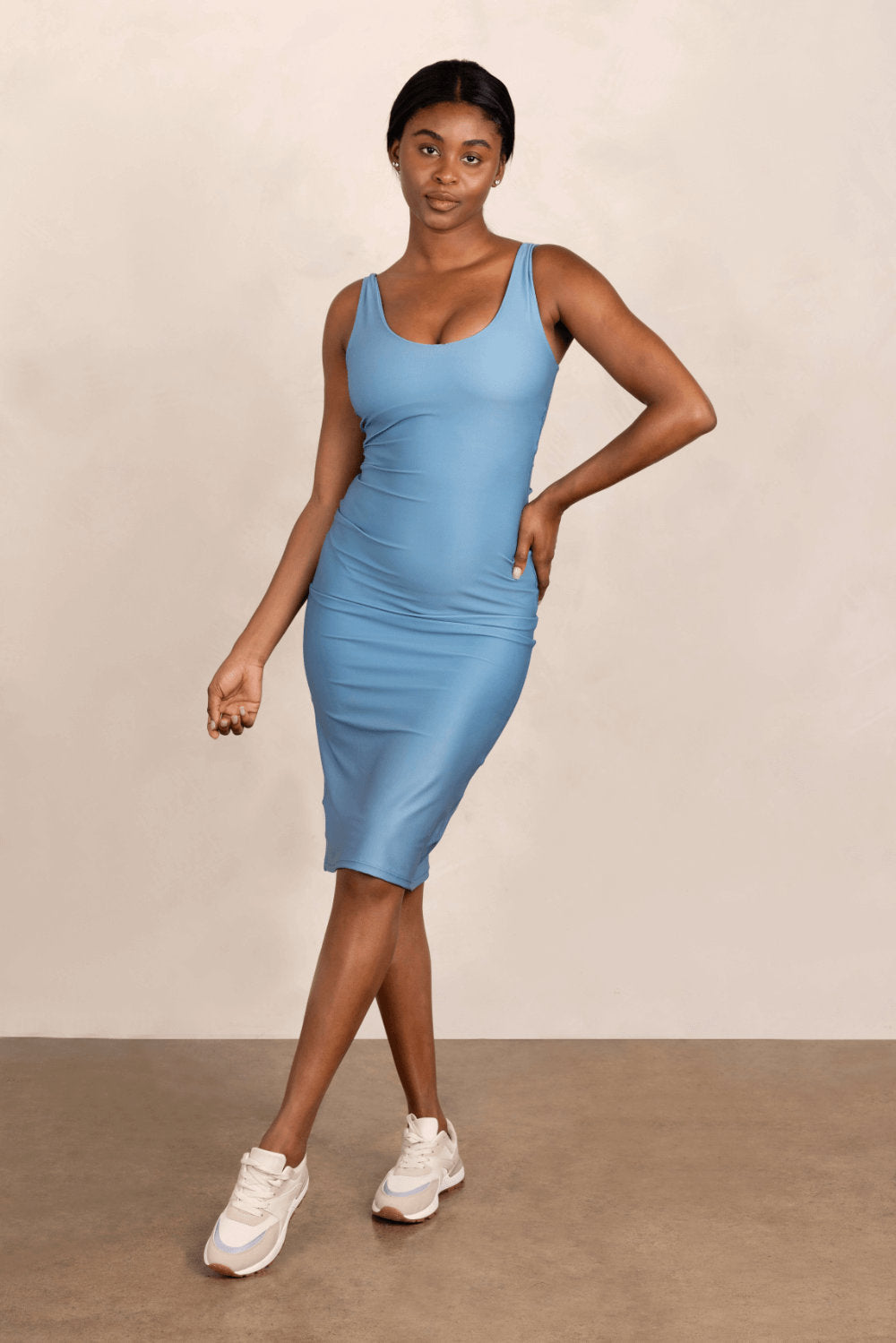 Jet Set Bodycon Mid Dress is flattering, versatile, and everywhere-ready. Its figure-hugging midi length and classic silhouette make it a closet must-have. The soft fabric feels smooth and sleek on your skin, and easily goes from day (if worn from the front) to night (if worn from the back), from casual to dressy.